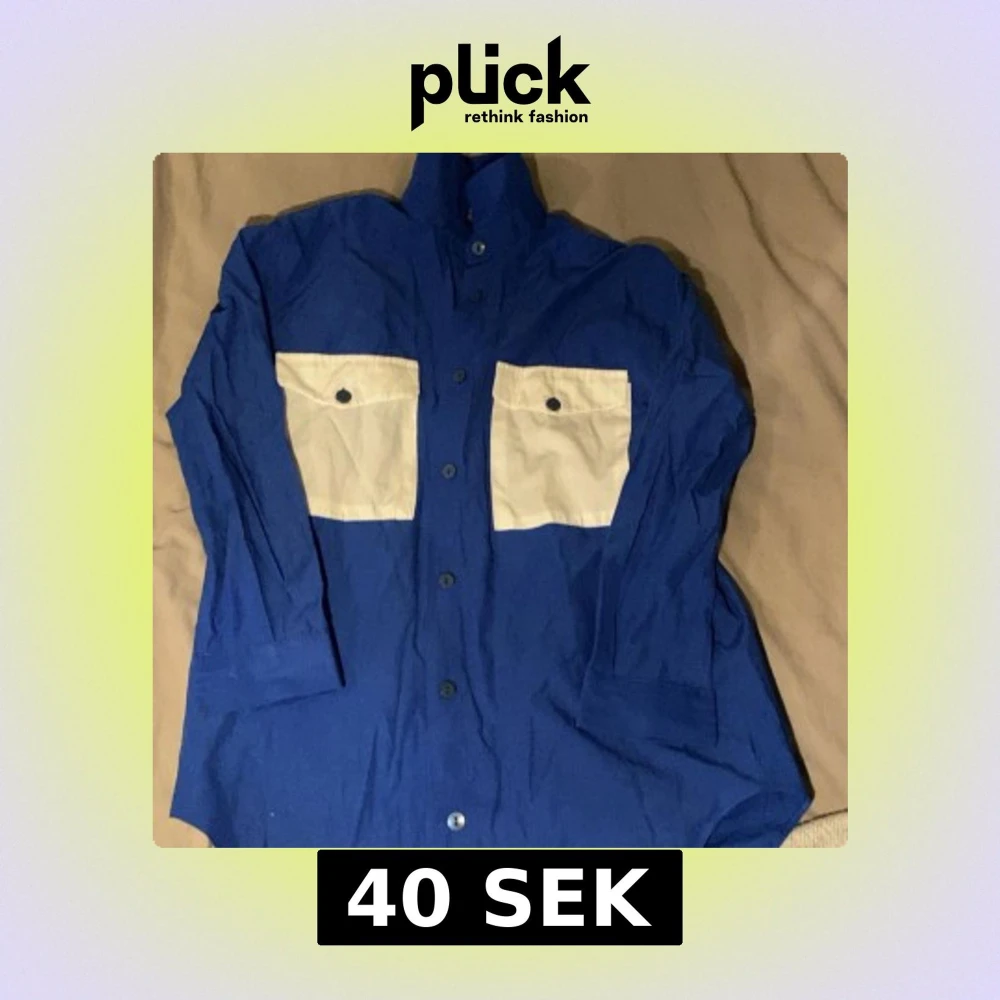 Snygg blå skjorta med kontrasterande beige fickor framtill. Skjortan har långa ärmar och knappar hela vägen ner. Perfekt för en stilren look.