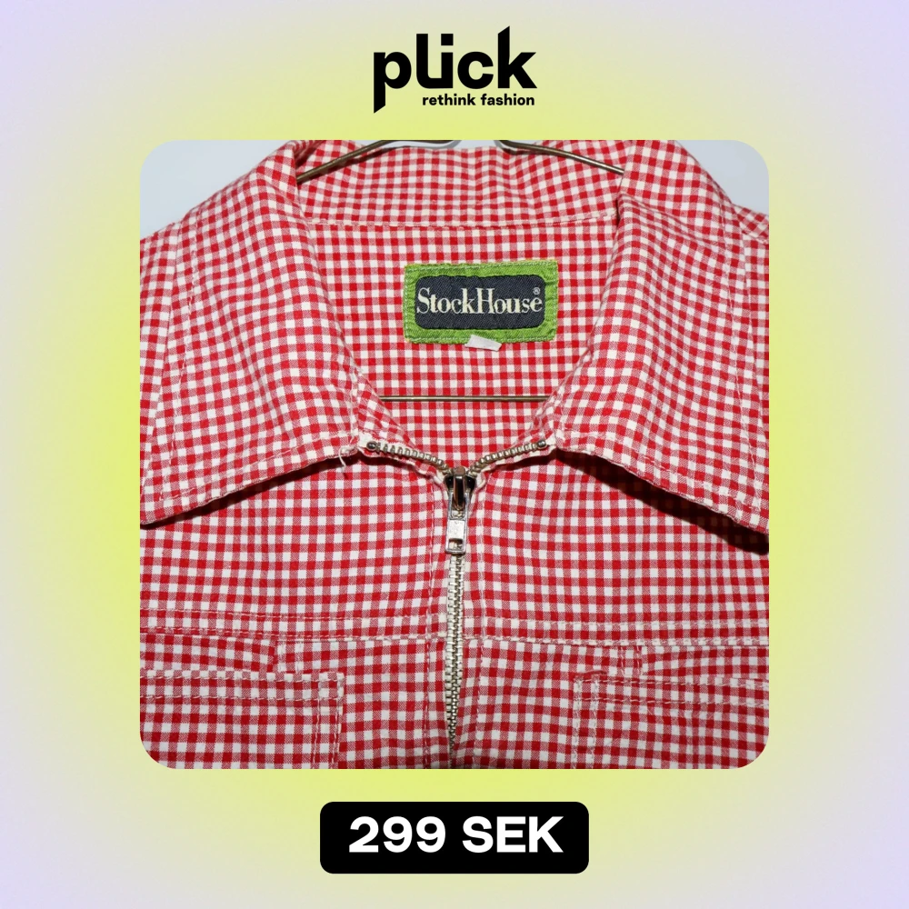 Säljer en superfin röd och vit rutig skjorta från StockHouse. Den har en dragkedja framtill och korta ärmar, perfekt för vår och sommar. Skjortan är i bra skick och har en cool retrovibe. Passar perfekt till jeans eller kjol för en avslappnad look!