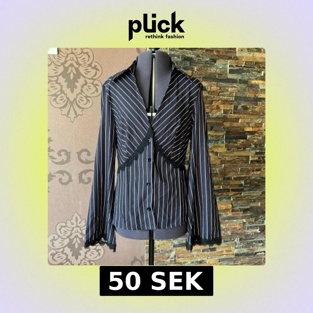 Svart skjorta med vita ränder och snygga spetsdetaljer vid ärmslut och över bröstet. Långärmad modell med knappar framtill och klassisk krage. Tillverkad i lätt, stretchig polyesterblandning. S enligt stl, men passar nog mer en M