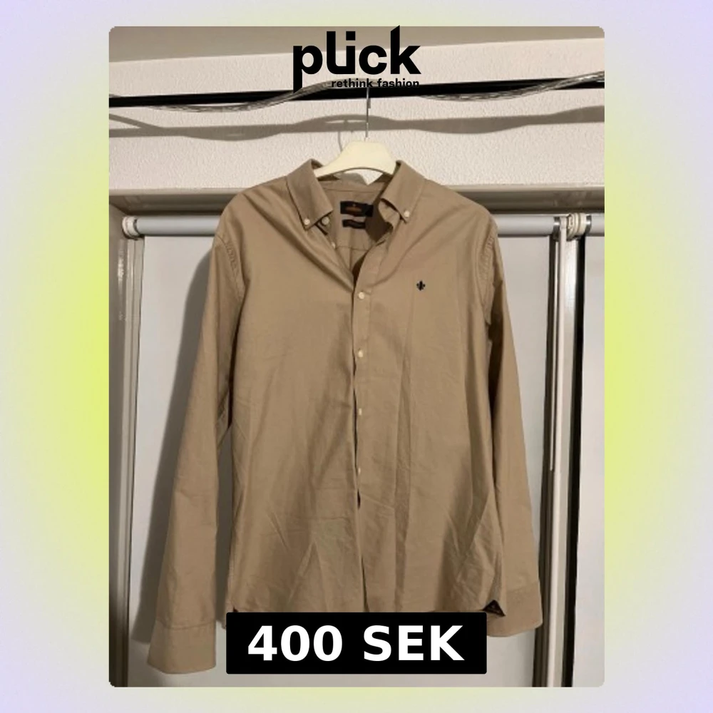 Säljer en stilren beige skjorta från Morris Stockholm i storlek M. Skjortan har klassisk krage, knappar framtill och en liten broderad logga på bröstet. Tillverkad i mjuk bomull och passar perfekt till många olika looks. Använd typ 3 gånger för färgen inte passade mig. Köpte för 1000