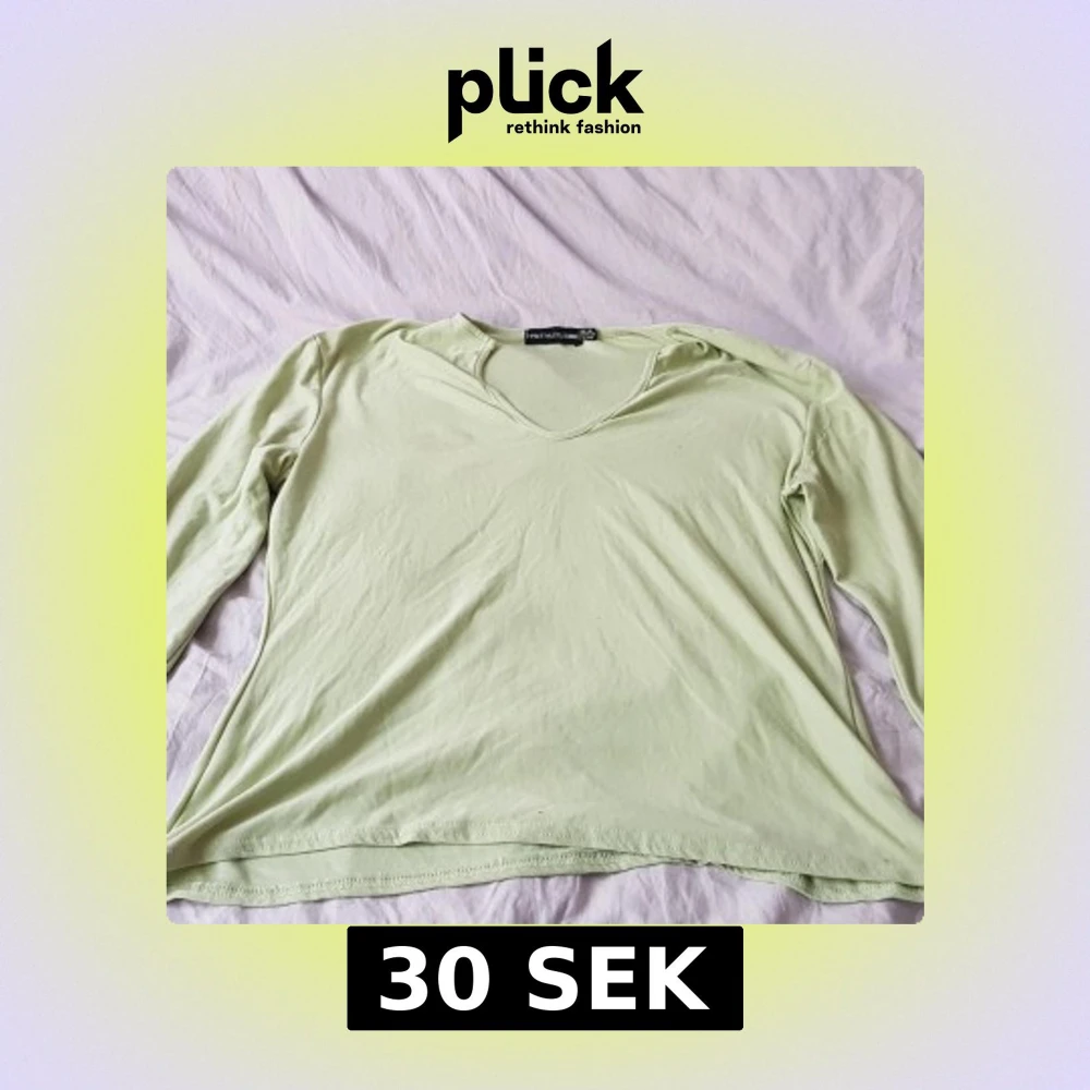Säljer en ljusgrön långärmad topp från PrettyLittleThing. Toppen har en v-ringad hals och är tillverkad i ett mjukt material. Perfekt för en avslappnad stil. 💚