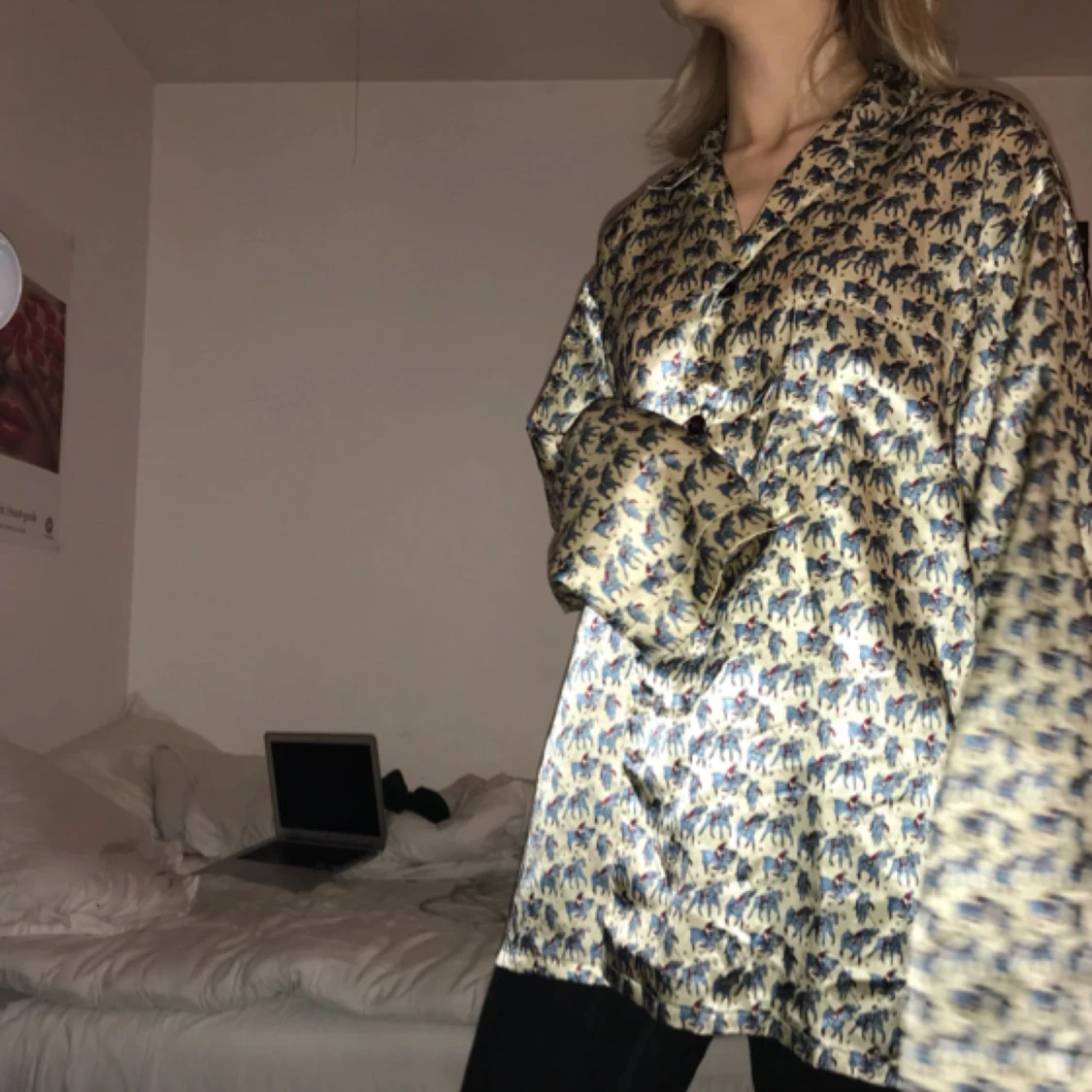 Glansig skjorta med massa små ryttare på. Sjukt skön och luftig. Perfekt till både vinter och sommar. Köparen står för eventuell frakt❤️