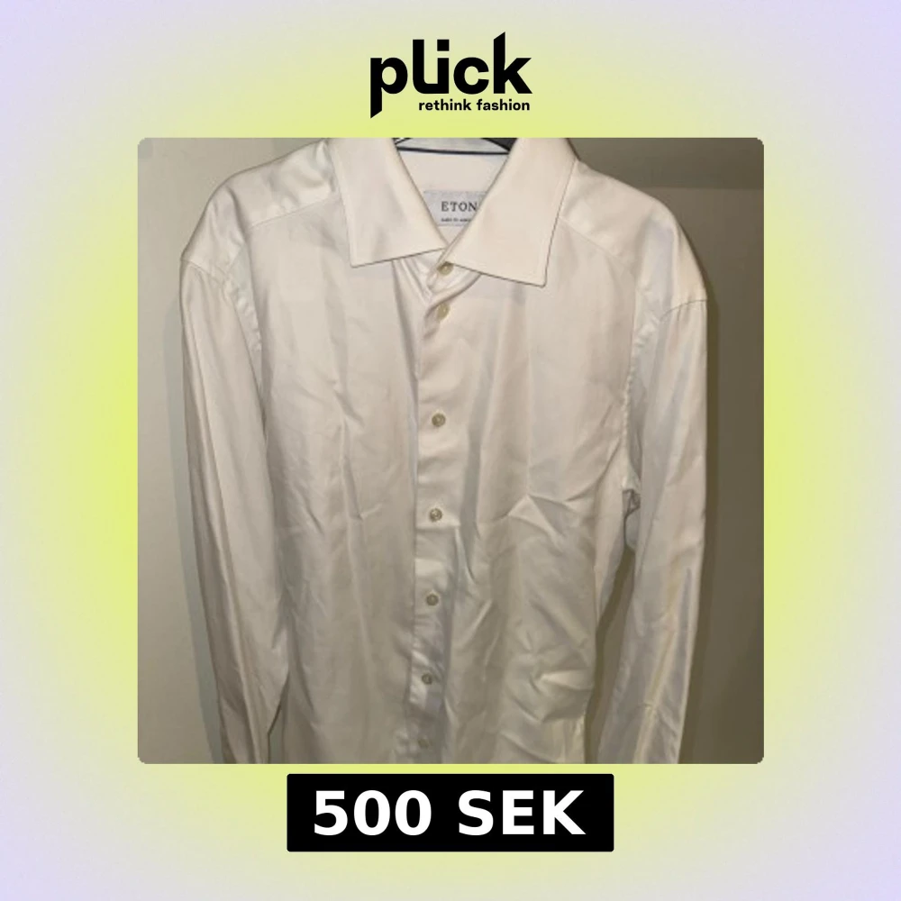 Klassisk vit skjorta från Eton med lång ärm och knappar framtill. Skjortan har en bred krage och är tillverkad i ett tunt, elegant bomullstyg. Perfekt för dig som vill ha en stilren och tidlös look. 500kr/styck (Paketpris 2000kr)