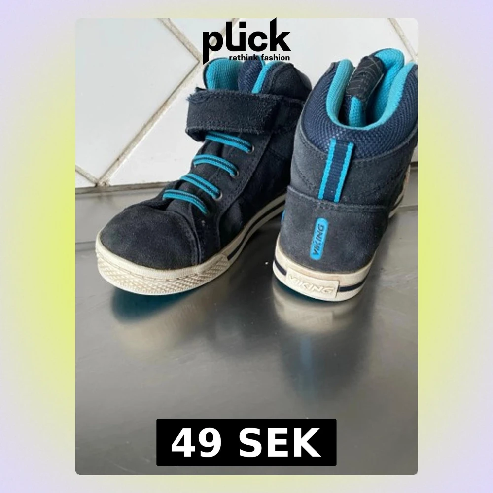 Snygga mörkblå sneakers från Viking med turkosa detaljer och snörning. Skorna har en högre modell med kardborreband upptill och är tillverkade i mocka och syntet. Perfekta för dig som gillar sportig stil och vill ha bekväma skor till vardags.
