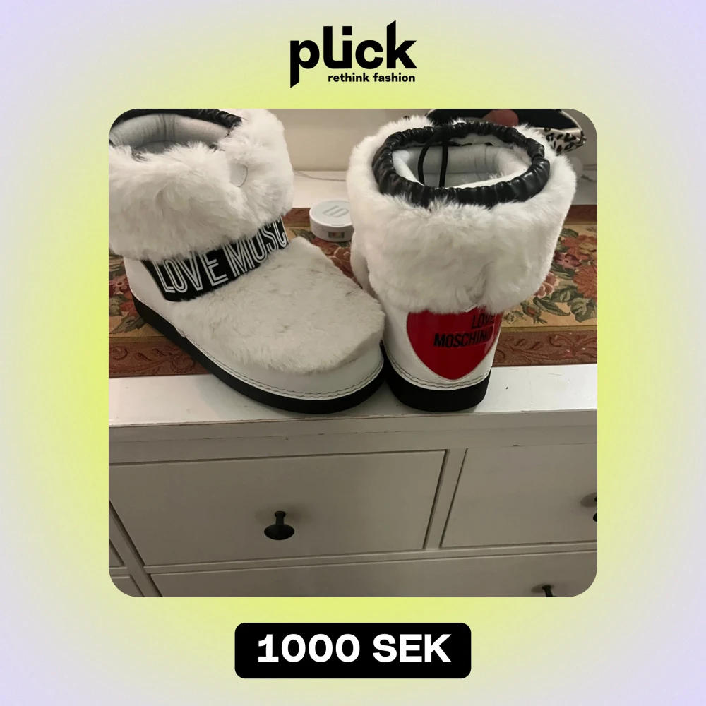 Superfina vita boots från Love Moschino med fluffig päls och svart textdetalj. De har en cool design med ett rött hjärta på sidan och är perfekta för vintern. Insidan är fodrad för extra värme och komfort. Perfekta för att hålla stilen även när det är kallt ute! 🖤