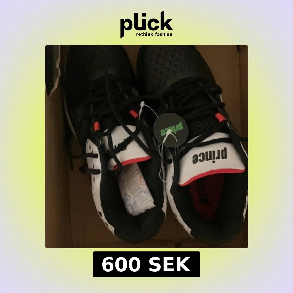 Snygga sneakers från Prince i svart och vitt med röda detaljer. Ovandelen har mesh för bra andningsförmåga och sidorna är förstärkta med vita partier och svarta snören. Perfekta för dig som gillar sportig stil och vill sticka ut med en modern look.