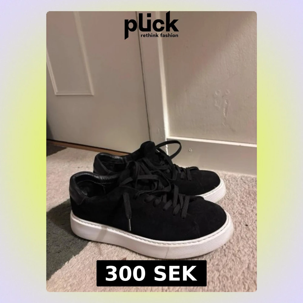 Säljer ett par svarta sneakers från Legend med ovandel i mocka och detaljer i skinn. Skorna har snörning och en chunky vit platt sula som ger en modern look. Perfekta för dig som gillar stilrena och tidlösa sneakers med lite extra höjd.