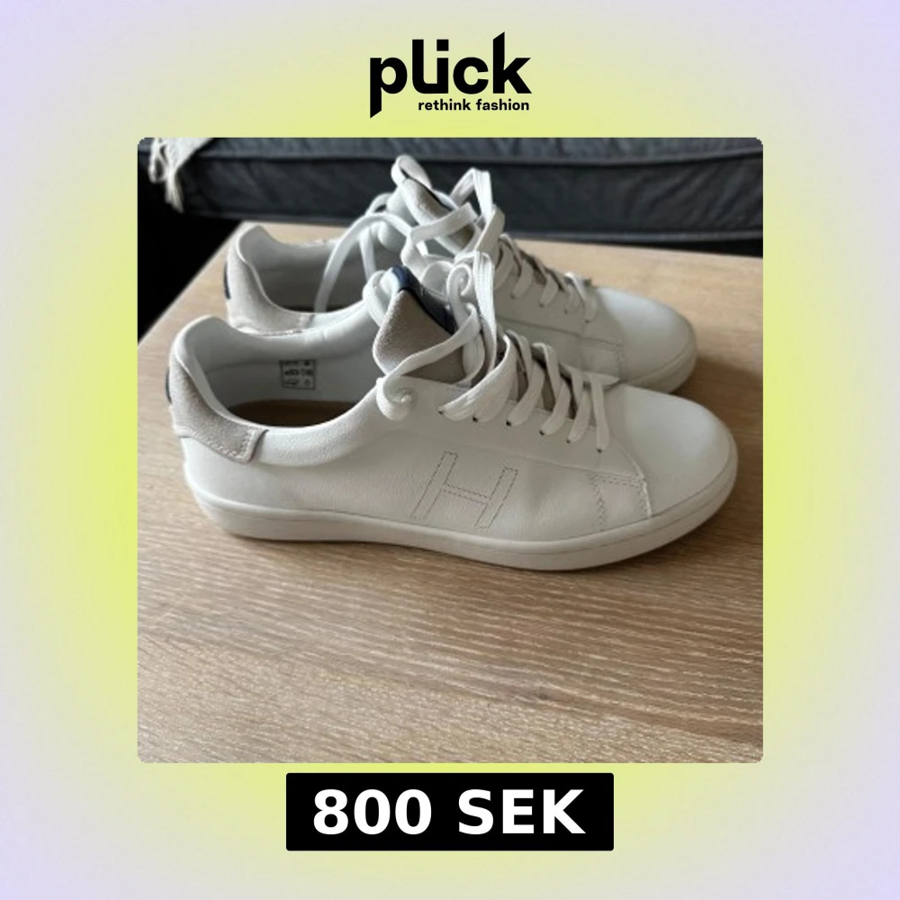 Använda ENDASTE 1 gång!Stilrena vita sneakers från Hackett Sport med diskret H-logga på sidan. Skorna har ovandel i skinn och detaljer i beige mocka vid hälen. Klassisk snörning och rund tå ger en clean look. Perfekta för dig som gillar minimalistisk stil.