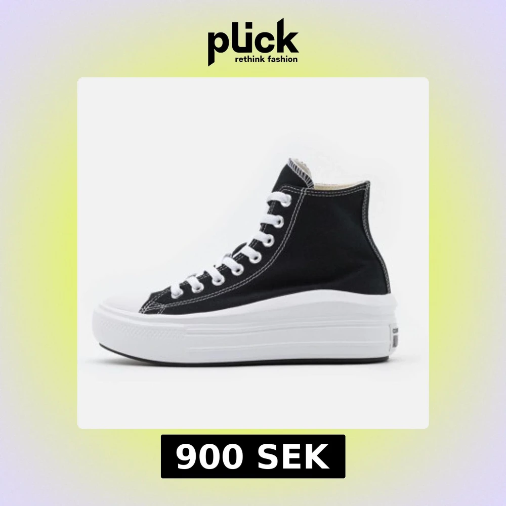 Säljer ett par klassiska svarta Converse All Star high-top sneakers med vit platåsula och vita snören. Skorna har använts 2 gånger och kommer inte längre till användning. Säljer för 900