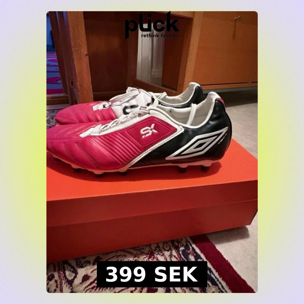 Säljer ett par Umbro SX Valor II fotbollsskor i rött, vitt och svart. Skorna har klassisk snörning, rund tå och dobbar för gräsplan. Tillverkade i skinn med snygga detaljer och Umbro-logga på sidan. Perfekta för dig som vill sticka ut på planen!