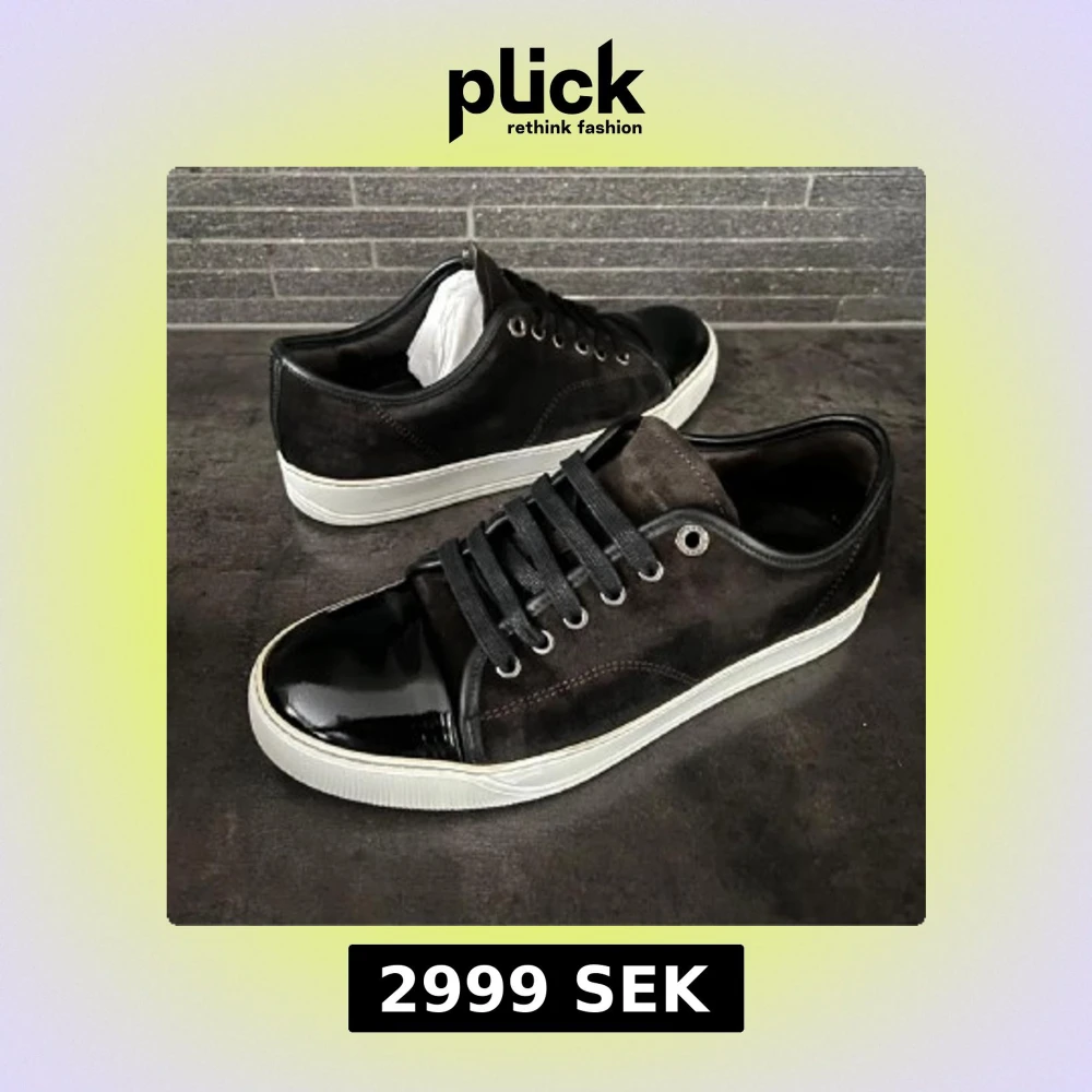Snygga svarta sneakers med ovandel i mocka och glansig lackad tå. Skorna har svarta snören, silverfärgade öljetter och vit platt sula. Perfekt för dig som gillar en stilren men ändå unik look! Skriv gärna vid frågor