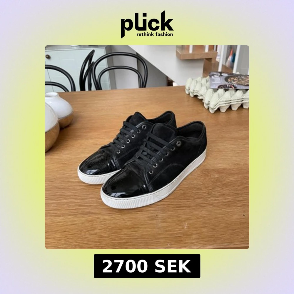 Snygga svarta lanvins med vit sula och snörning. Ovandelen är i mocka och tån har en cool lackad toe cap som ger extra edge. Storlek 42 och passar 43 man får med dustbag. Dom är nästan som helt nya