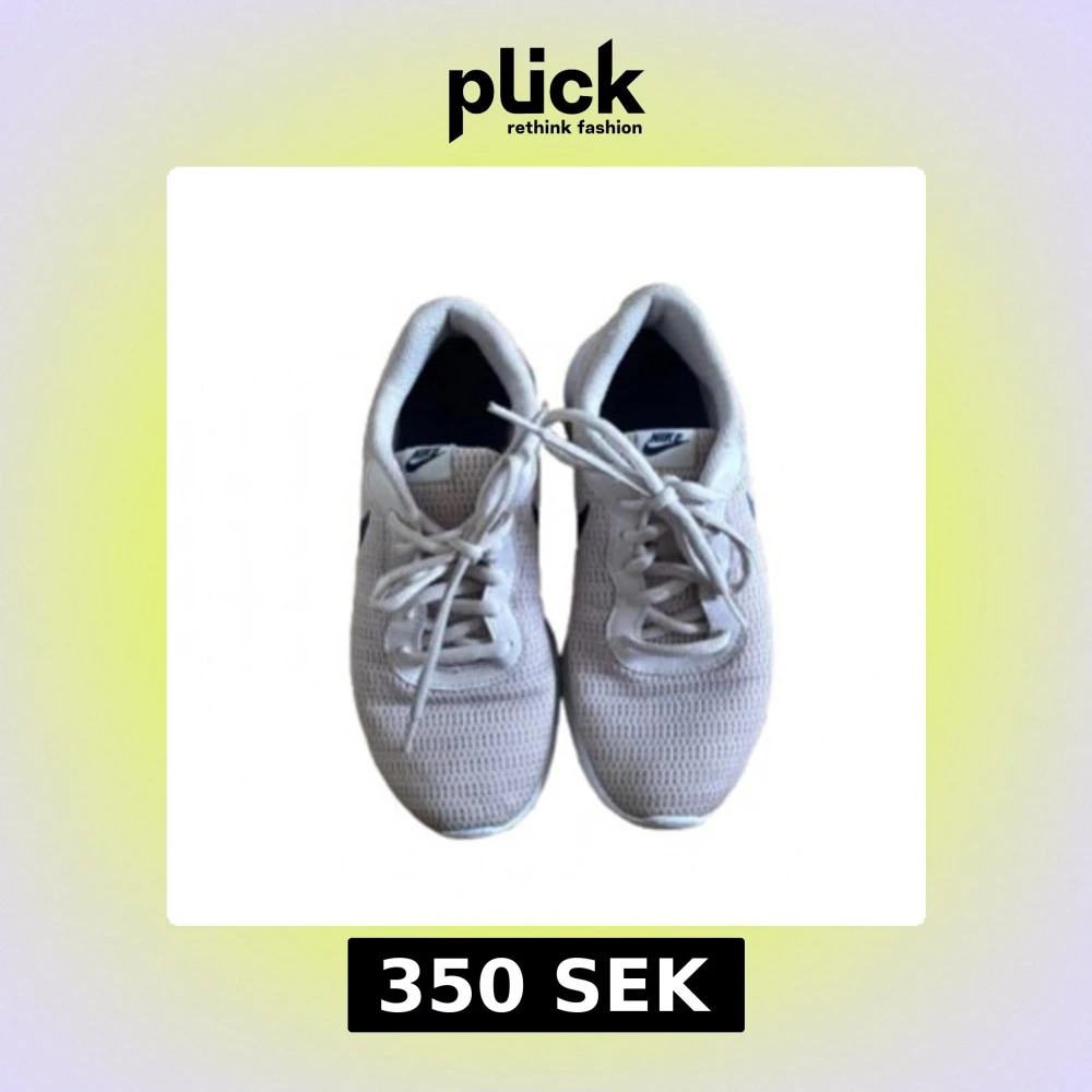 Säljer ett par puderrosa Nike sneakers med blå swoosh. Skorna har mesh-ovandel för bra andningsförmåga och klassisk snörning. Perfekta för vardagsbruk eller träning. Lätta och bekväma med platt sula.