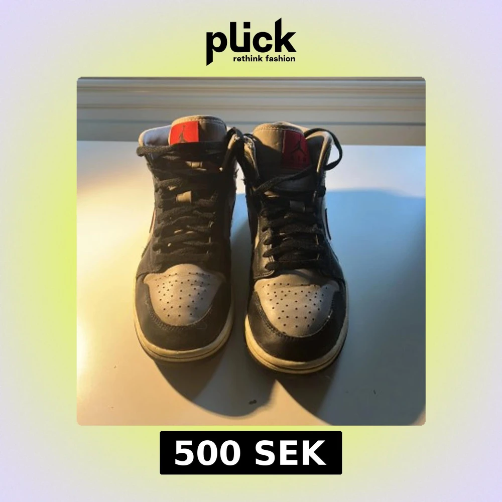 Säljer ett par klassiska Nike Air Jordans med svart och grå ovandel, röd swoosh och detaljer. Högt skaft, perforerad tå och svart snörning. Vi kan också göra upp om pris sen. Storlek EU 40. Med nästan inga tvisningar. Man kan också diskutera pris sedan.