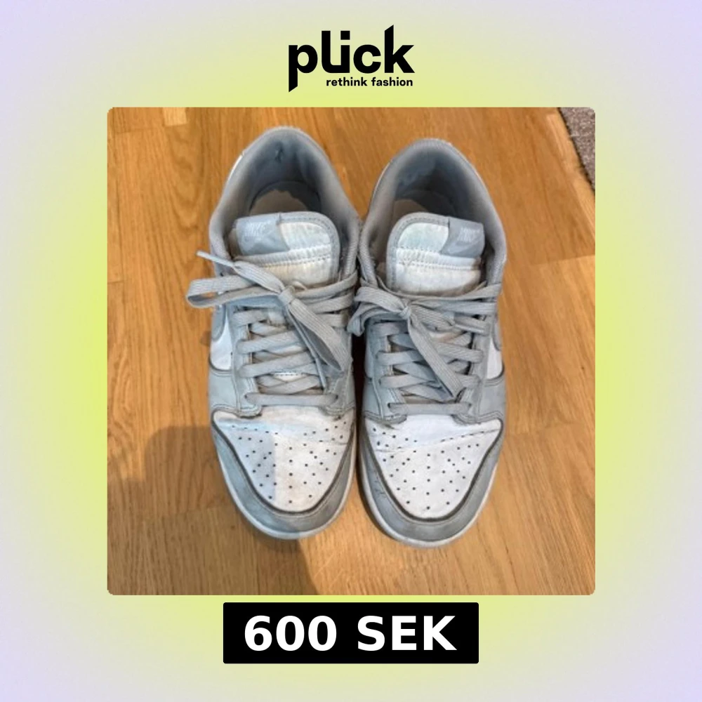Gråa Nike Dunk sneakers - Säljer ett par gråa Nike Dunk sneakers med klassisk design och perforerad tå. Skorna har snörning och en platt sula, samt rund tå. Perfekta för dig som gillar streetwear och vill ha en stilren look.