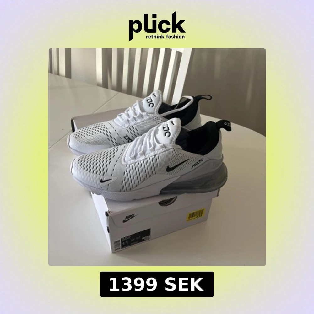 Nike Air Max 270 sneakers i vitt med svarta detaljer och stor synlig Air-enhet i hälen. Ovandel i ventilerande mesh och syntet, snörning och dragflik bak. Snygg sportig look och riktigt bekväma att gå i.