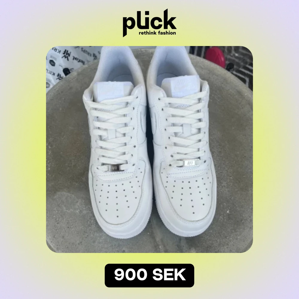 Vita Nike Air Force sneakers. Storlek 42,5. Använda 1 gång, säljes pga för stora. (De är lite stora i storleken.) Tyvärr hunnit slänga lådan.