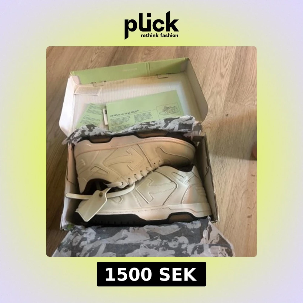 Säljer ett par Off-White i beige med svarta detaljer. Skorna har en chunky sula och tydliga Off-White detaljer som tag och text. Perfekta för dig som gillar streetwear och vill sticka ut med en unik sneaker.