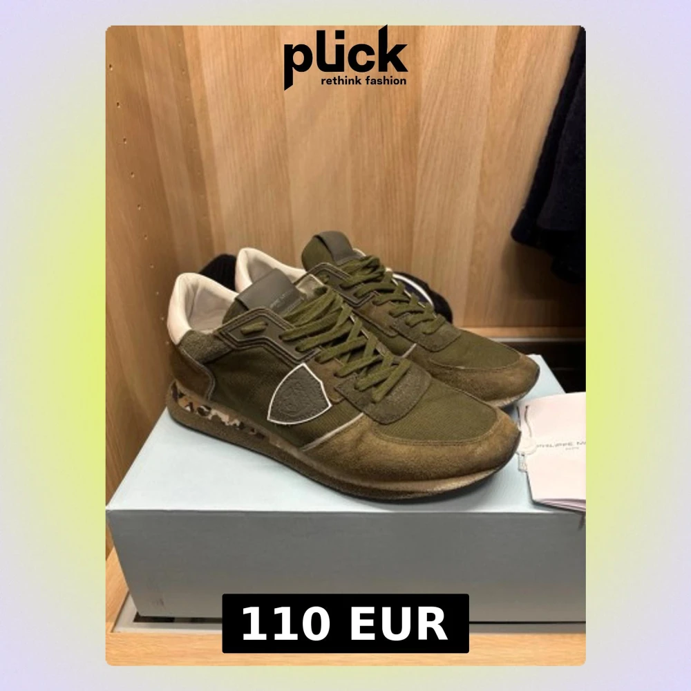 Säljer ett par Philippe Model sneakers i olivgrönt. Skorna är i bra skick. Liten defekt, se sista bilden.