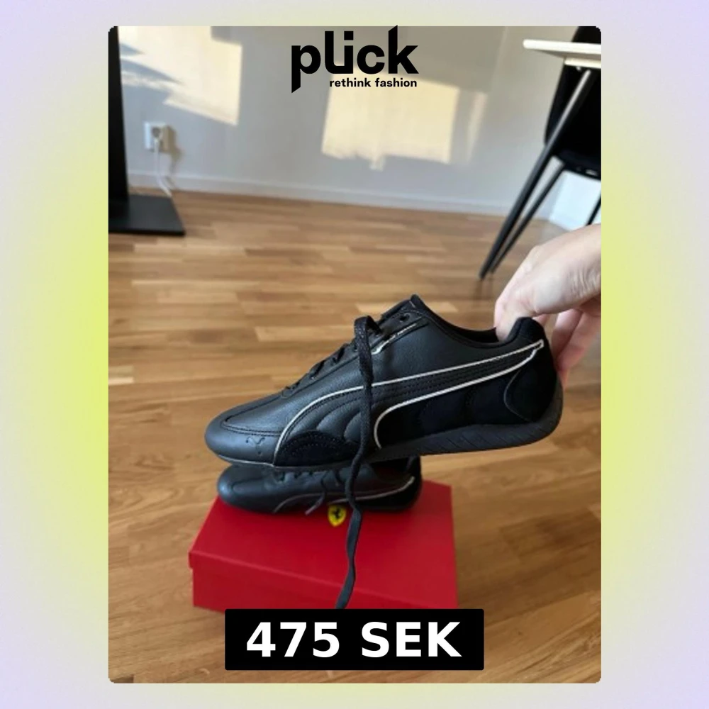 Snygga svarta Puma Ferrari sneakers med klassisk vit logga på sidan och detaljer i svart skinn. Skorna har snörning och en låg profil, samt Ferrari-märke på plösen. Perfekta för dig som gillar sportig stil och exklusiva samarbeten.