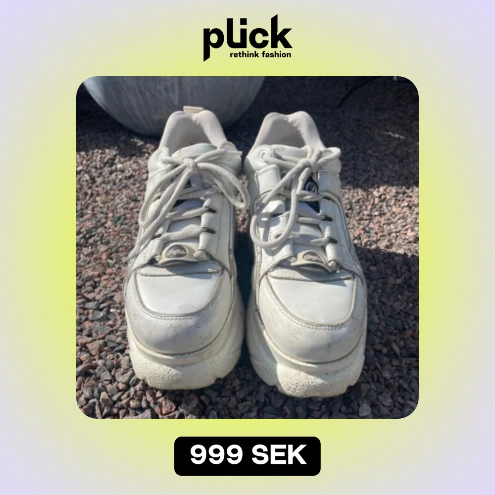 Buffalo sneakers i bra skick! Gått ganska mycket med dom så finns tecken på användning men dom ser fortfarande ganska nya och fräscha ut. Yttermaterialet är Kalvskinn och platåhöjden är 4,5 cm. Köpte dom för ca 2000kr