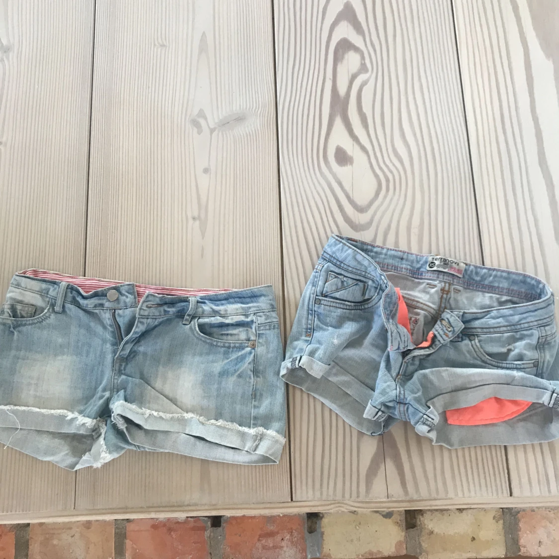 50kr för båda! +35kr frakt! Supersnygga jeansshorts till sommaren! Låga där fram o sitter snygg över gumpen😉😍 Hade dem passar hade jag haft kvar dem!