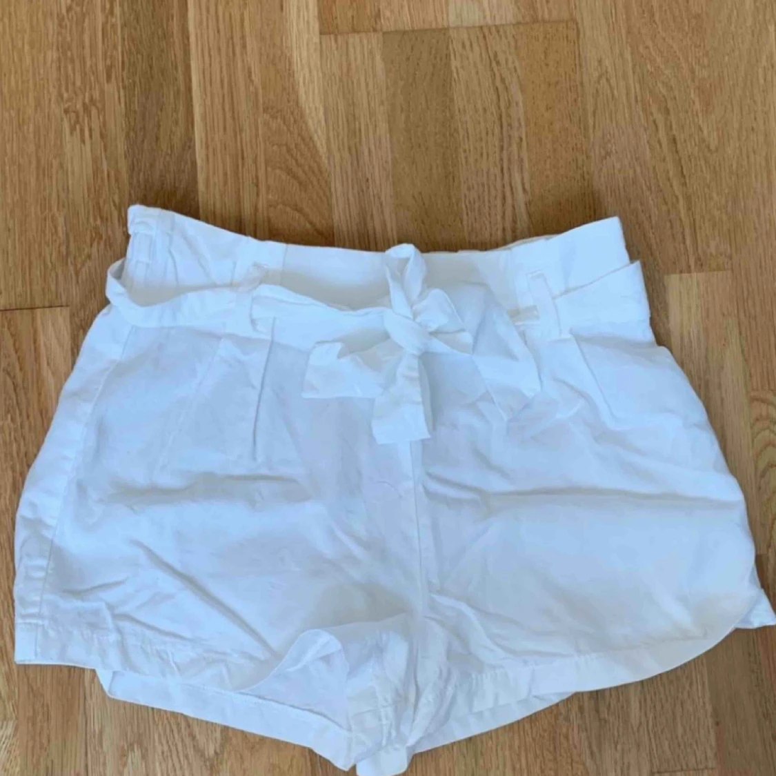 vita stretchiga shorts med snörning aldrig använda