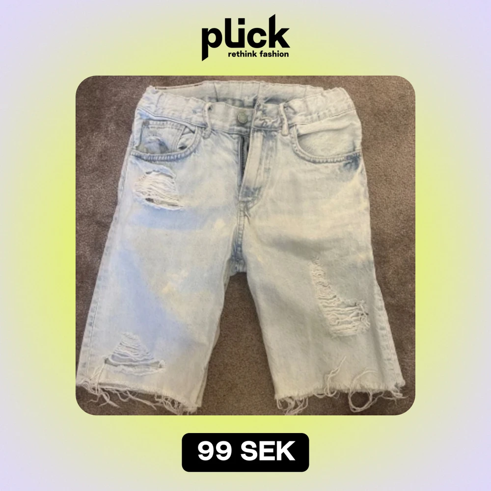 Säljer ett par ljusa jeansshorts i slim fit med coola slitningar. Perfekta för sommaren! De har en klassisk femficksdesign och är gjorda i denim. Shortsen är i bra skick och redo för nya äventyr. Passar perfekt till en avslappnad stil.