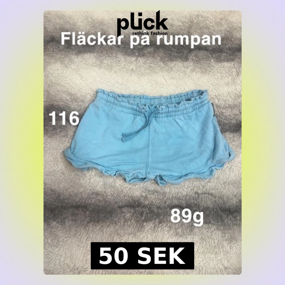 Söta ljusblå shorts med volangkant och snörning i midjan. Perfekta för varma dagar och har en avslappnad passform. 🌸 Fläckar på rumpan. Storlek 116.