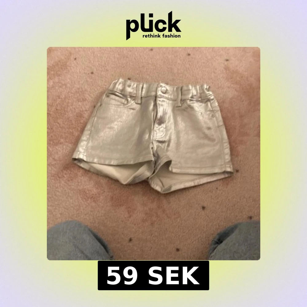 Snygga silvriga shorts i metallic-look med hög midja och klassisk femficksdesign. Shortsen har bälteshällor och knappstängning framtill. Perfekta för dig som vill sticka ut med en glittrig vibe.