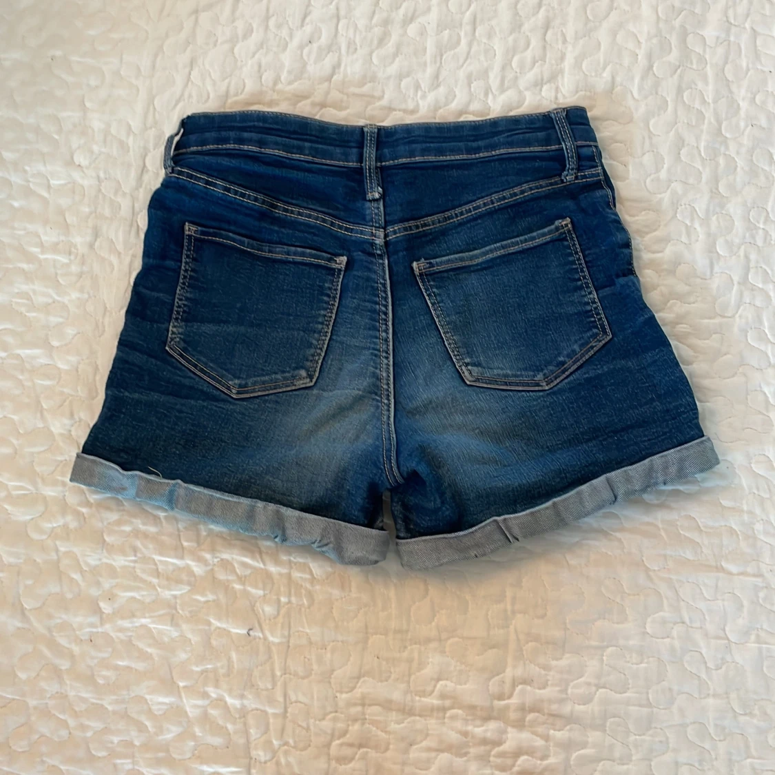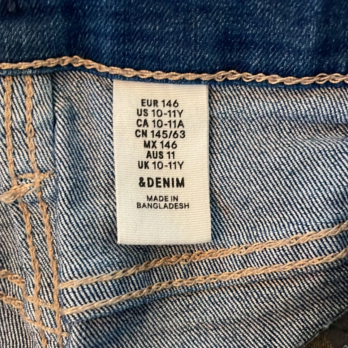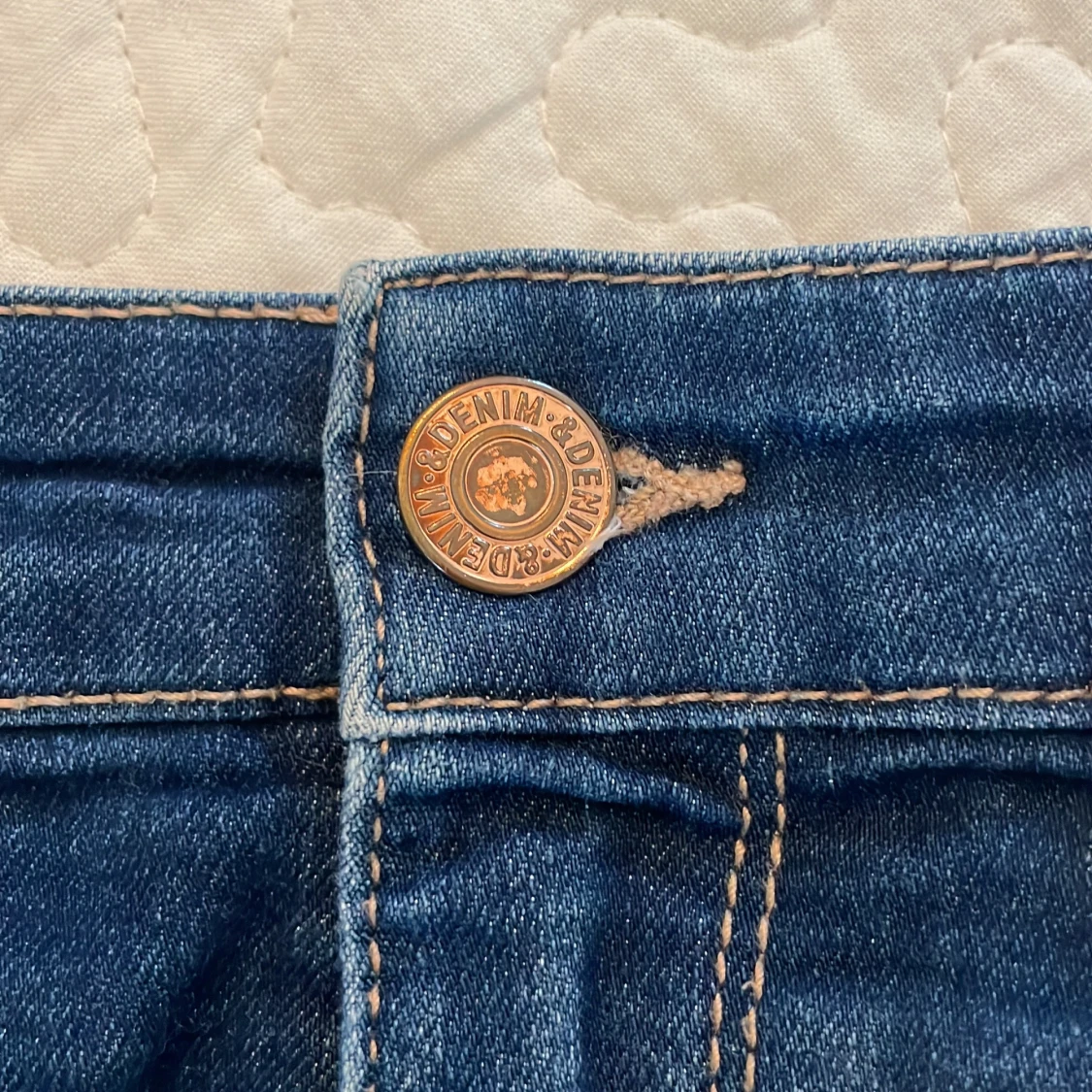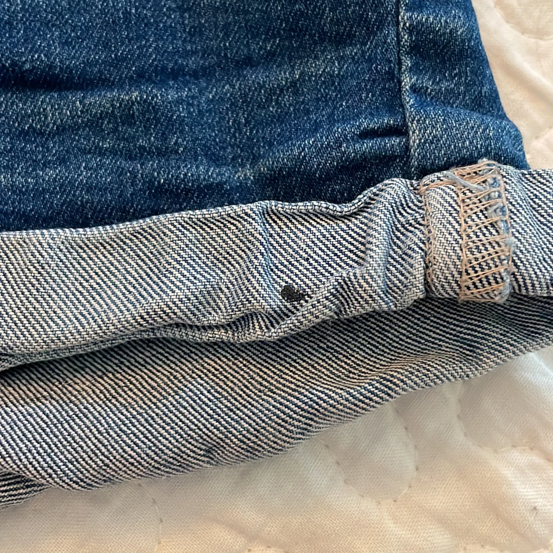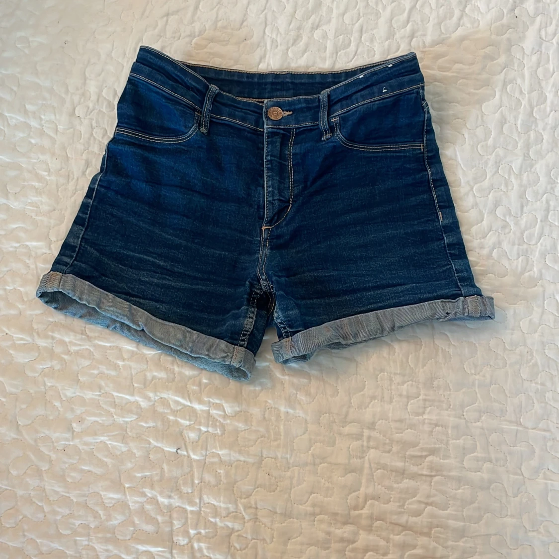 Snygga blå jeansshorts från &Denim med klassisk femficksdesign och uppvikta benslut. Modellen har normal passform och midwaist, med tydliga kontrastsömmar och knapp i metall framtill. Perfekta för sommarens chill dagar.