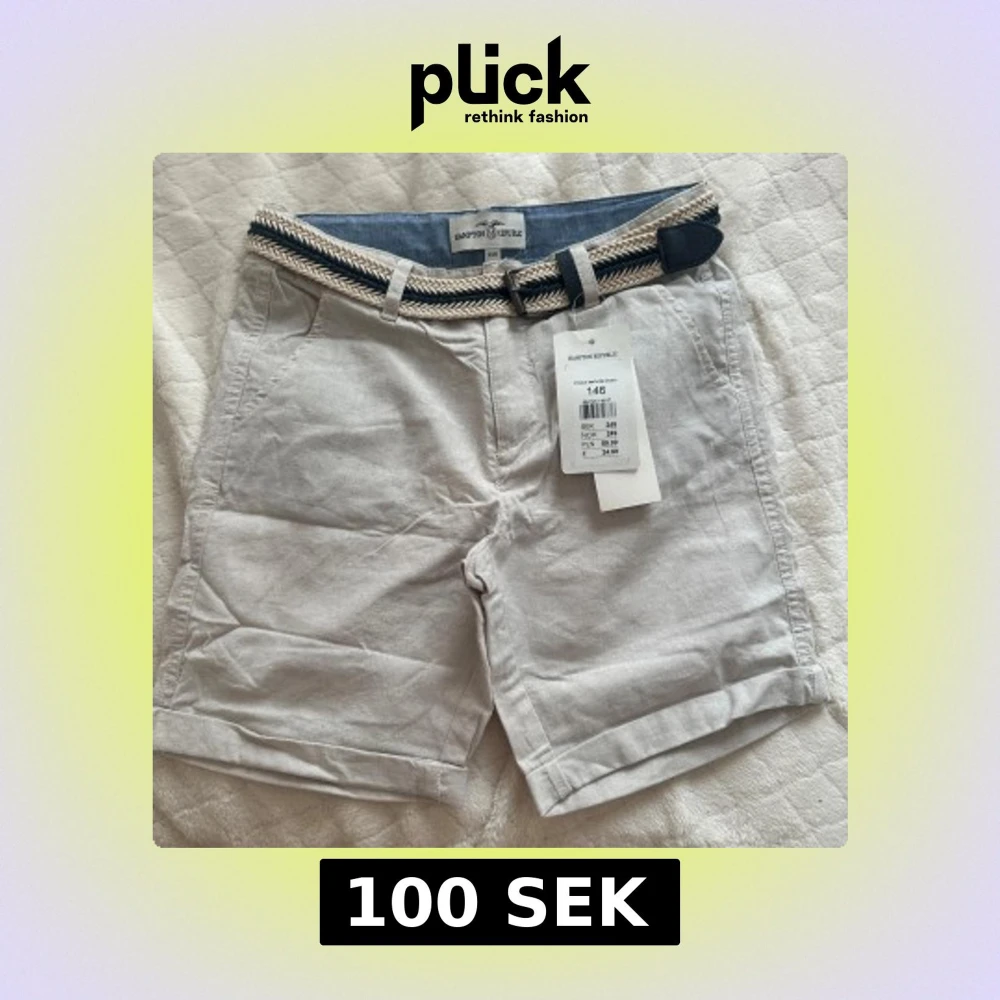 Stilrena pojkshorts från Hampton Republic i ljusbeige färg med flätat bälte. Helt nya med prislapp kvar. Storlek 146 (ca 10–11 år). Perfekta till vardags eller finare sommaranvändning.