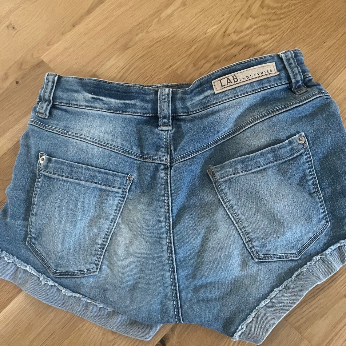 Snygga blå jeansshorts från LAB Industries med fransad kant och klassisk femficksdesign. Shortsen har knapp och dragkedja framtill, bälteshällor och slitna detaljer för en cool look. Perfekta för varma dagar och chill stil.