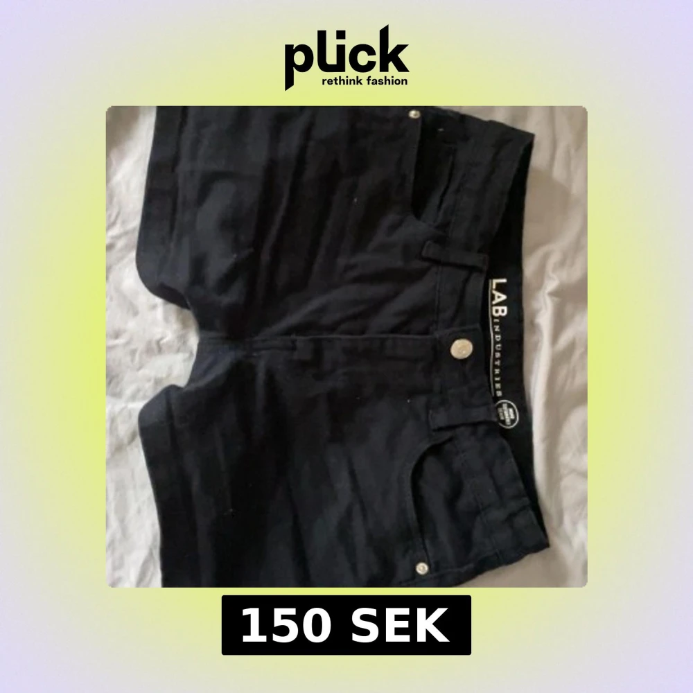 Snygga svarta shorts från LAB Industries. Dom är andvända ett få tal någon ger men fins inga täcken på det dom är hela och har en till liten ficka under den stora på framsidan, shortsen sitter tajt och är PERFECKTA men jag har växt ur dom nu så jag måste tyvärr sälja dom, shortsen ör i storlek 152 men jag med storlek 36 får fortfarande på mig dom över rumpan men kan inte knäppa, har du st 32 får du nog på dig dom bra, kontakta för mer information elle mer detaljerade bilder 💞