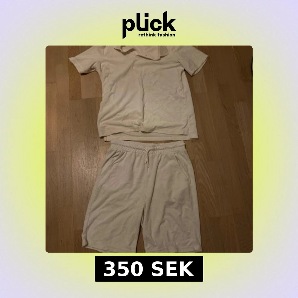 Säljer ett par vita shorts i mjuk frotté med elastisk midja och snörning. Shortsen har en avslappnad passform och sidofickor, perfekta för chill dagar eller sommarhäng. Enkel och clean look som är lätt att matcha med andra plagg.