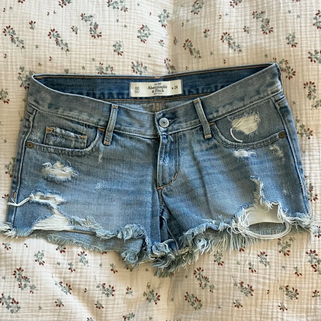 Jättefina lågmidjade jeansshorts med hål från abercrombie & fitch som jag köpt på Vinted men inte använt pga för små. De ser inte heller använda ut av den förra säljaren så jag tror de är helt nya🌸 midjemått: 36 cm tvärsöver/ w24