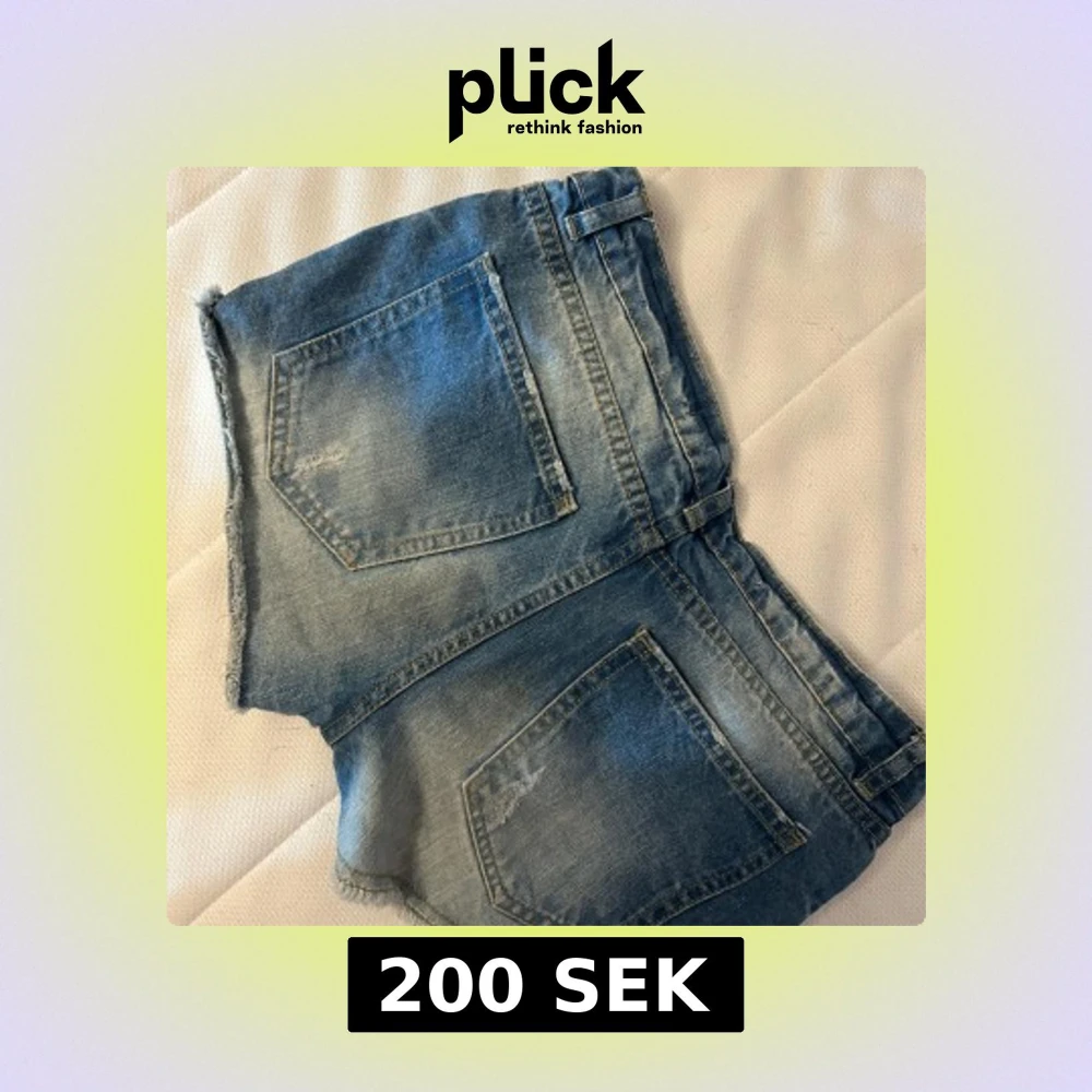 Snygga blå jeansshorts från Pull&Bear med slitna detaljer och fransig kant. Klassisk femficksmodell med låg midja och dragkedja. Tyvärr för små för mig därför jag säljer de, super coola!