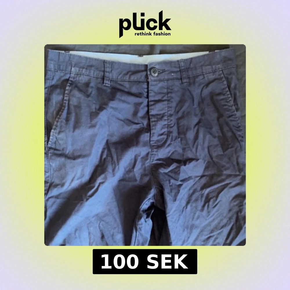 Snygga mörkblå chinos med normal passform. Byxorna har en klassisk design med knappar och bälteshällor. Perfekta för en stilren look.
