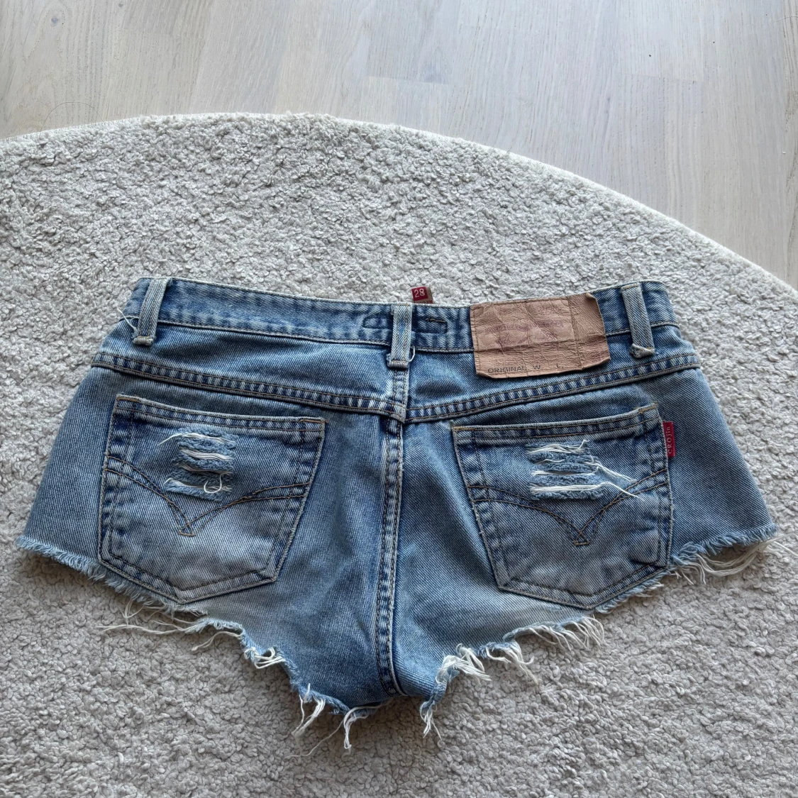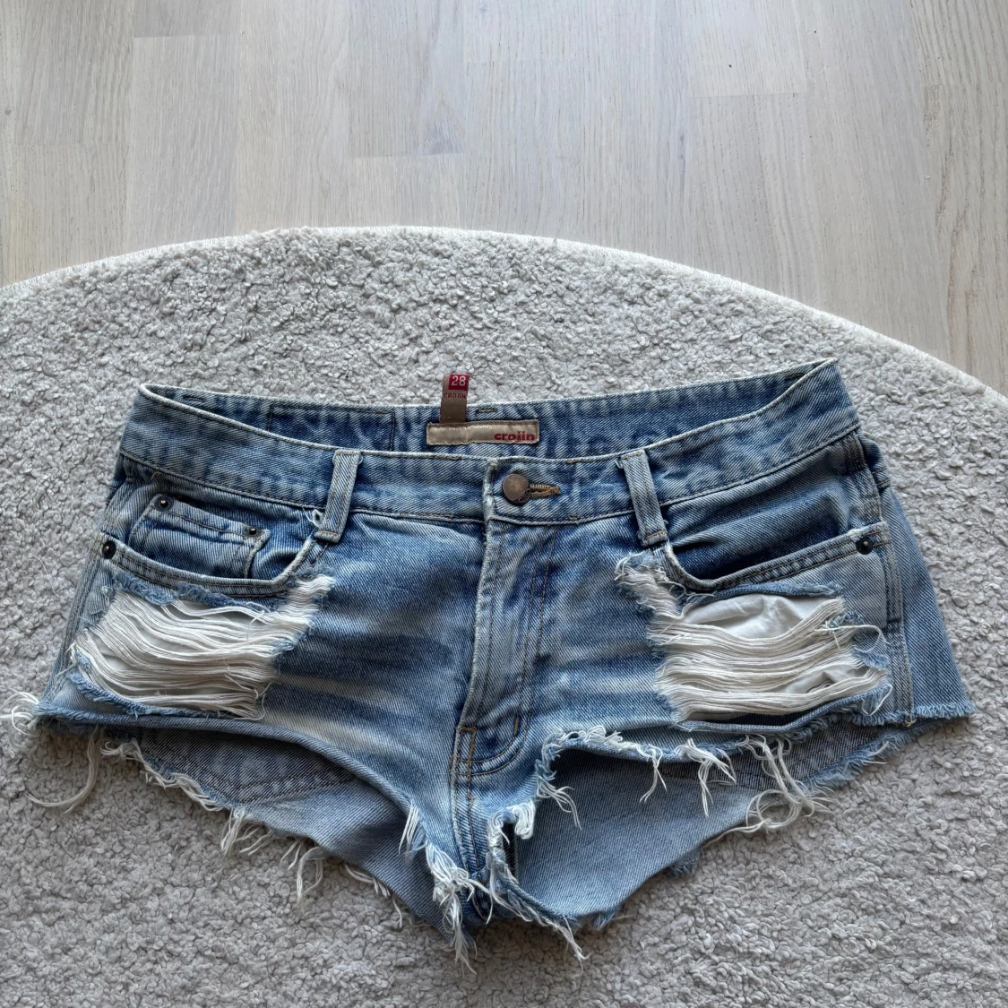Säljer dessa sjukt snygga ljusblåa jeansshorts med litna detaljer både fram och bak, tyvärr blivit lite för små för mig