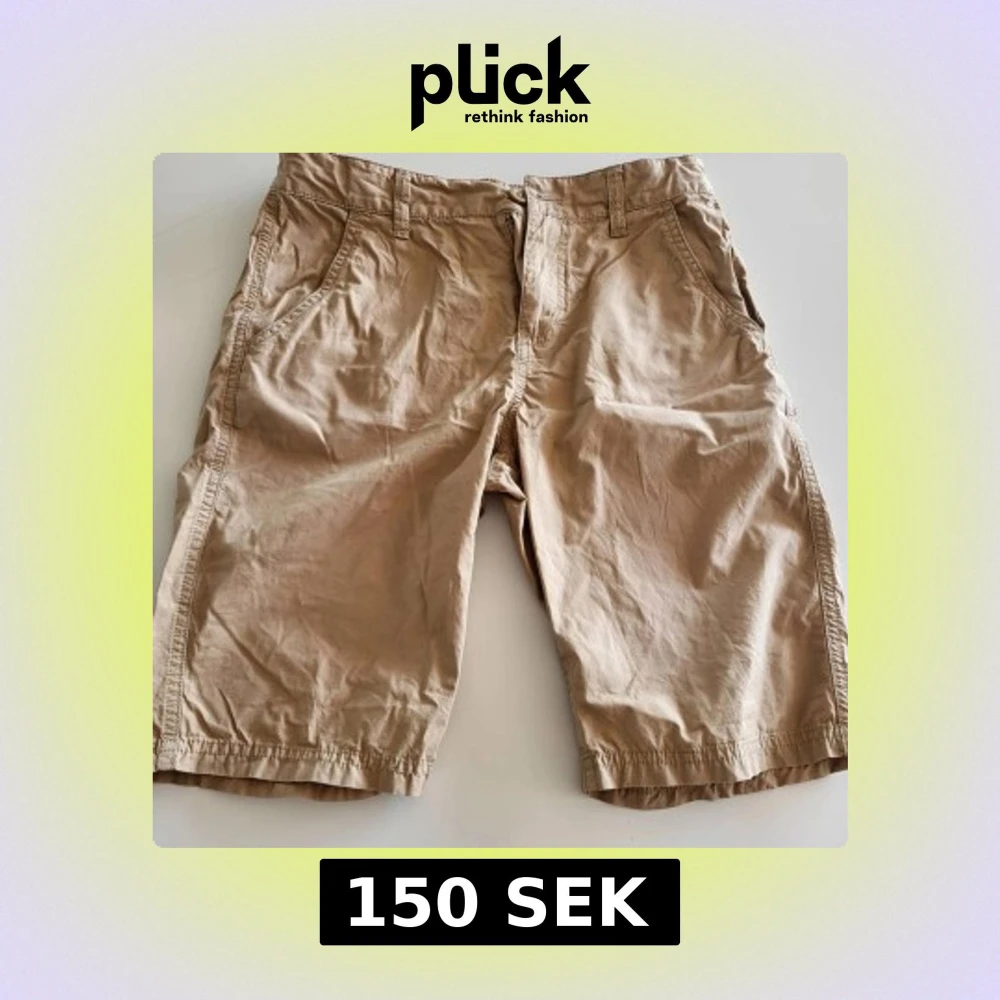 Klassiska beige shorts i bomull med normal passform. De har fickor fram och bak, bälteshällor och stängs med dragkedja och knapp. Perfekta för varma dagar och enkel att matcha med det mesta.