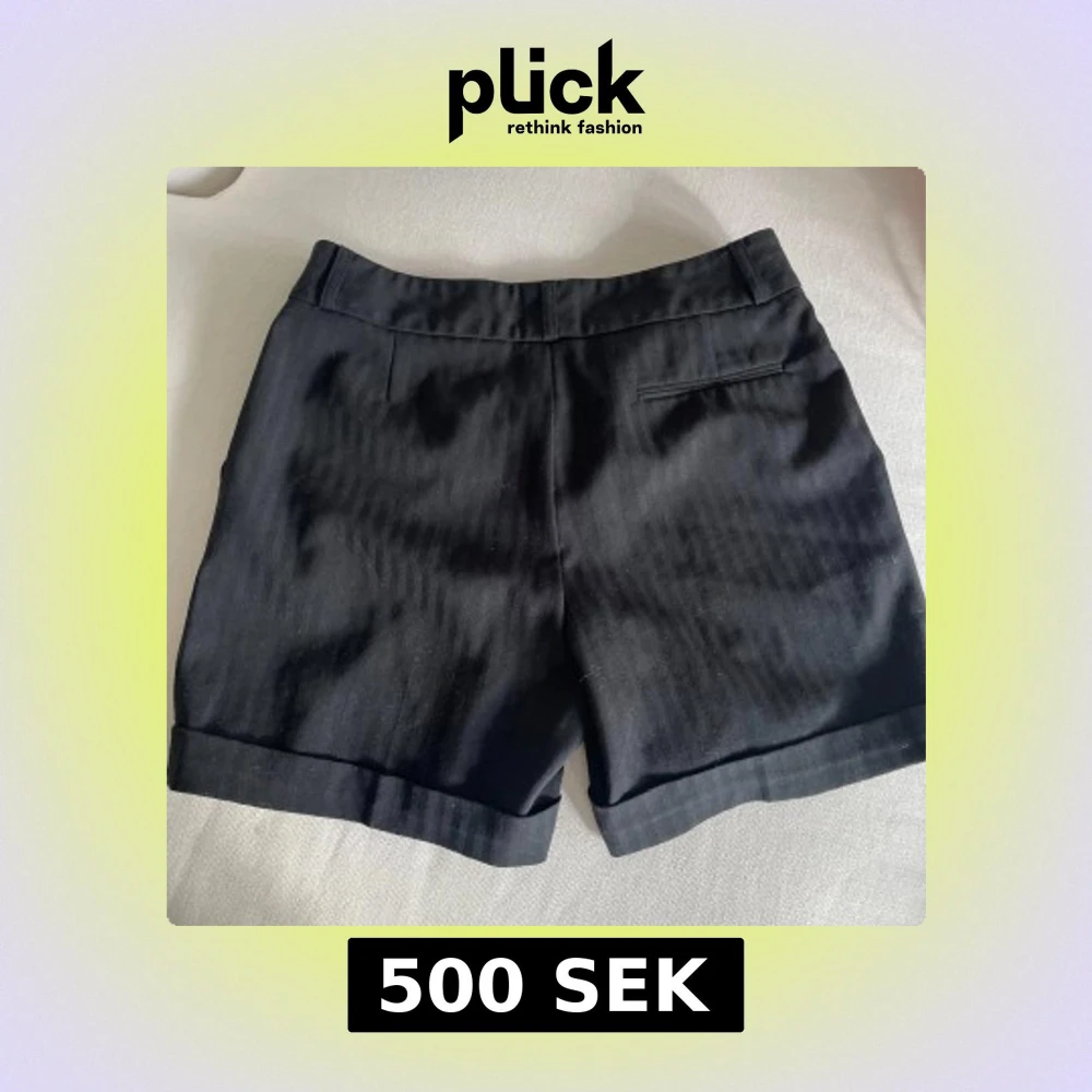 Klassiska svarta shorts med dressad look och uppvikta benslut. De har en rak passform, diskreta fickor och bälteshällor i midjan. Perfekta för en clean och stilren outfit. Materialet känns mjukt och svalt, troligen bomull eller polyester Märket Caroll köpt i Paris 2004