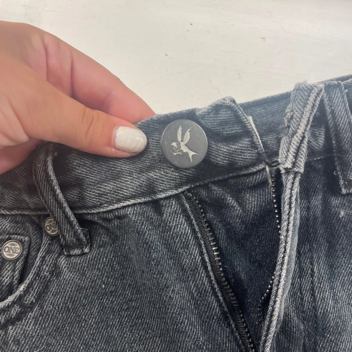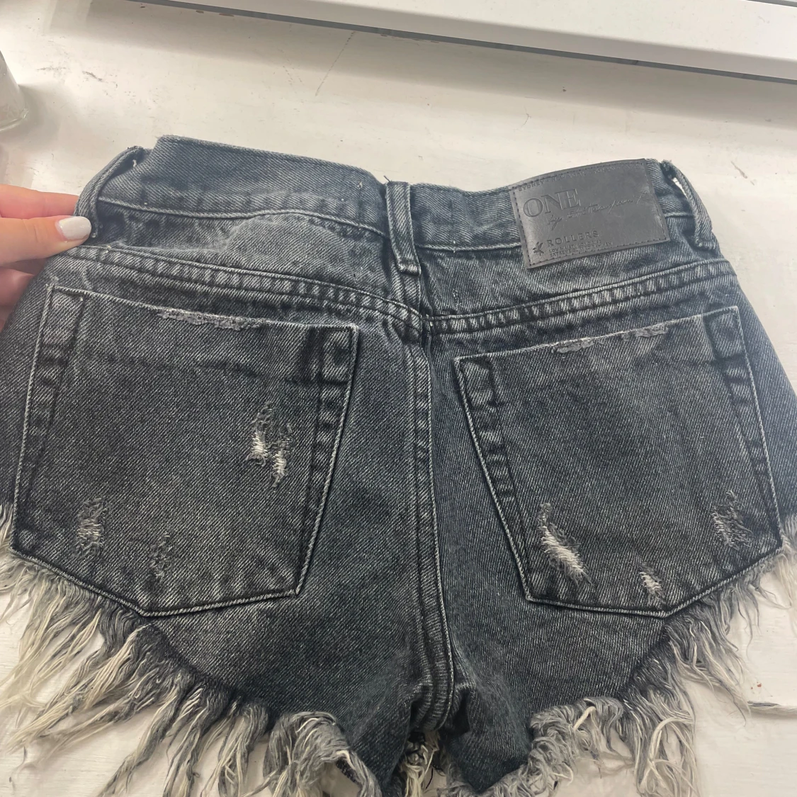 Riktigt snygga svarta jeansshorts från One Teaspoon med extremt fransig och rå kant, slitna detaljer och låg midja. Klassisk femficksmodell med dragkedja och knapp framtill. Perfekta för en edgy streetstyle-look.