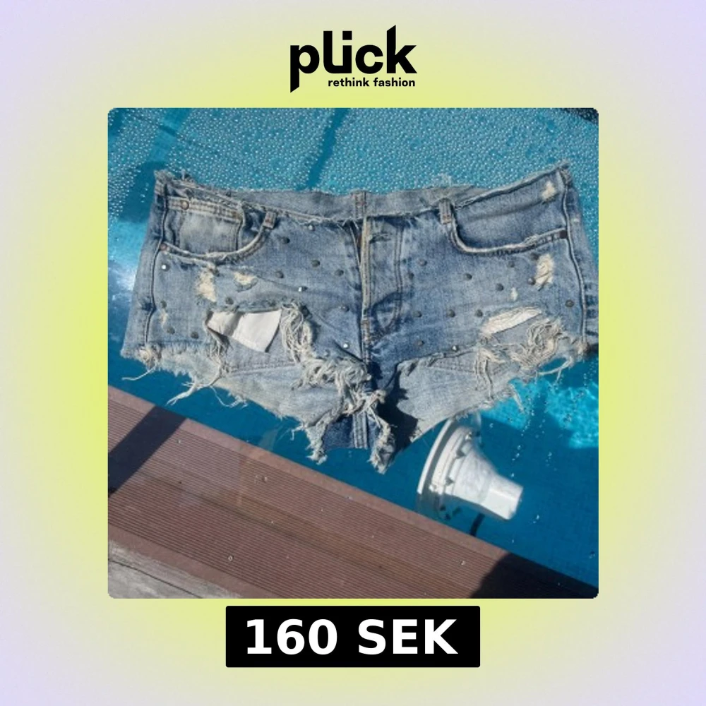 Snygga blå jeansshorts med slitna kanter och coola nitar framtill. Shortsen har låg midja. Perfekta för sommaren när du vill sticka ut med en bra vibe.💗