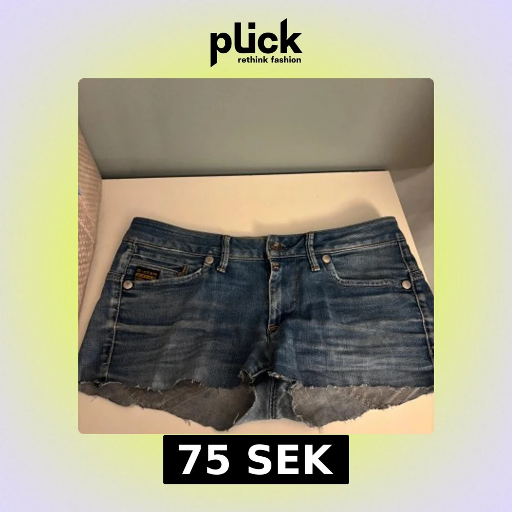 Säljer ett par blå lågmidjade jeansshorts från G-Star. Shortsen har detaljer och skulle säga att de är i strl 32-34💓Har klippt av de själv