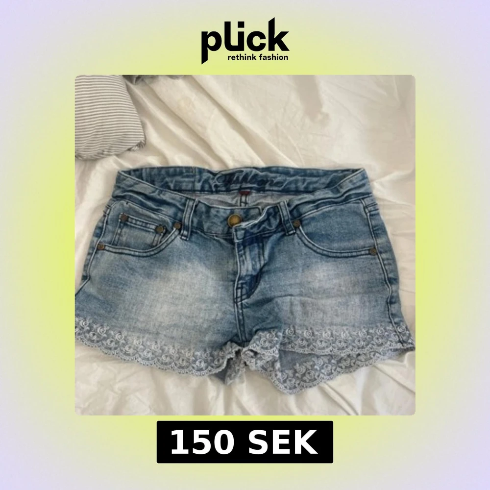 Snygga ljusblå jeansshorts från fishbone med dekorativ vit spetskant längst ner. Klassisk femficksmodell med knapp och dragkedja framtill. Perfekta för sommardagar när du vill ha en söt men avslappnad look.