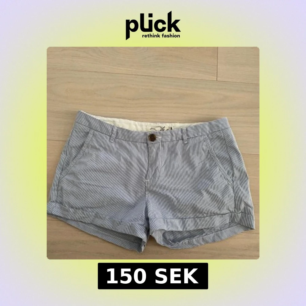 Snygga blå och vita randiga shorts från H&M L.O.G.G. i klassisk modell med fickor fram och bak, knäppning med knapp och dragkedja samt hällor för bälte. Perfekta för varma dagar och har en avslappnad men stilren look. Skriv vid frågor!!💗 pris kan diskuteras🫶
