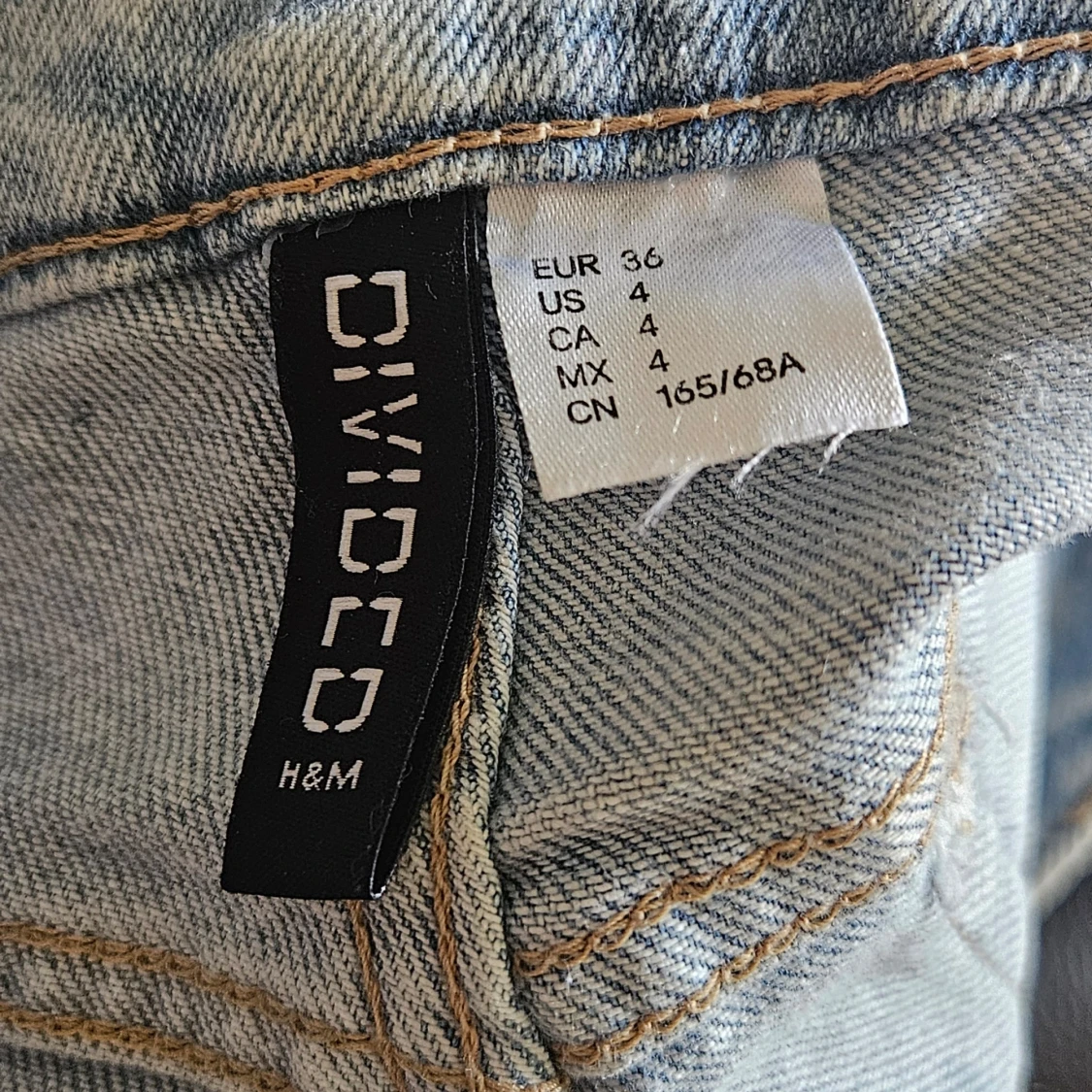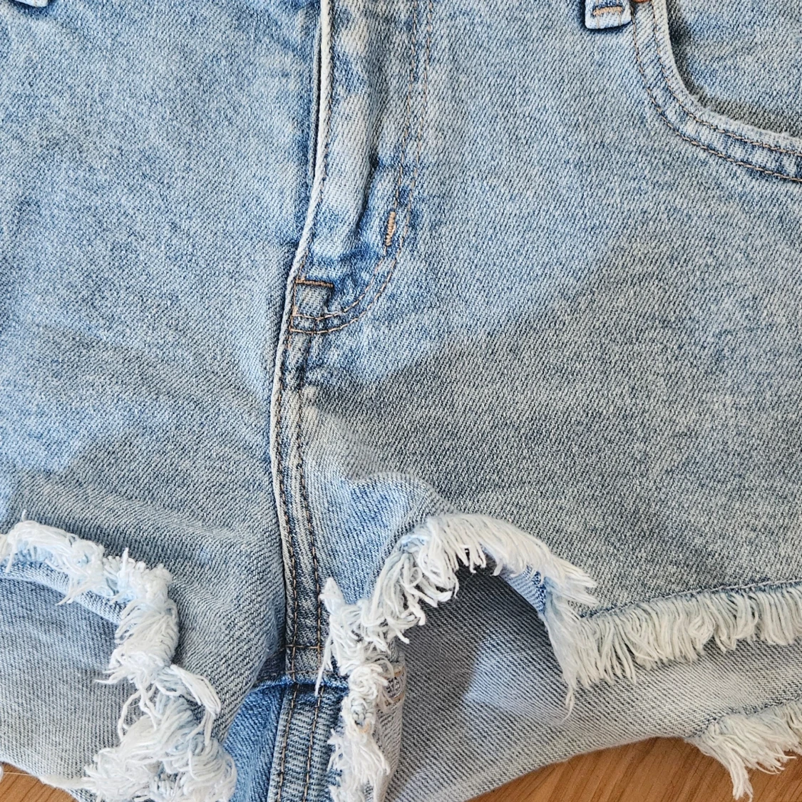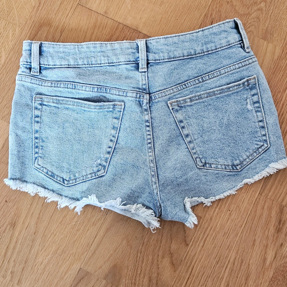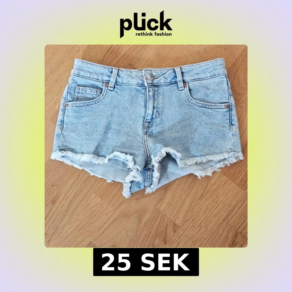 Snygga ljusblå jeansshorts från H&M Divided i storlek 36. Modellen är klassisk femficksdesign med fransiga kanter och råa benslut för en avslappnad vibe. Perfekta för varma dagar och enkel att matcha med allt. Materialet är mjukt denim.