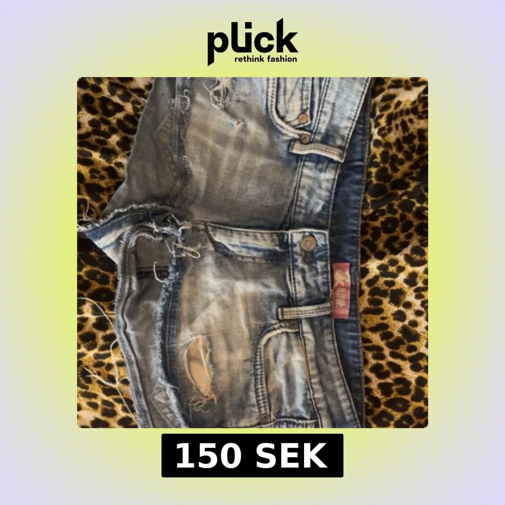 Snygga blå jeansshorts med slitna detaljer och fransar. Perfekta för en avslappnad stil. De har en klassisk femficksdesign och knappgylf. Väldigt lågmidjade och korta vid låren och röven👍