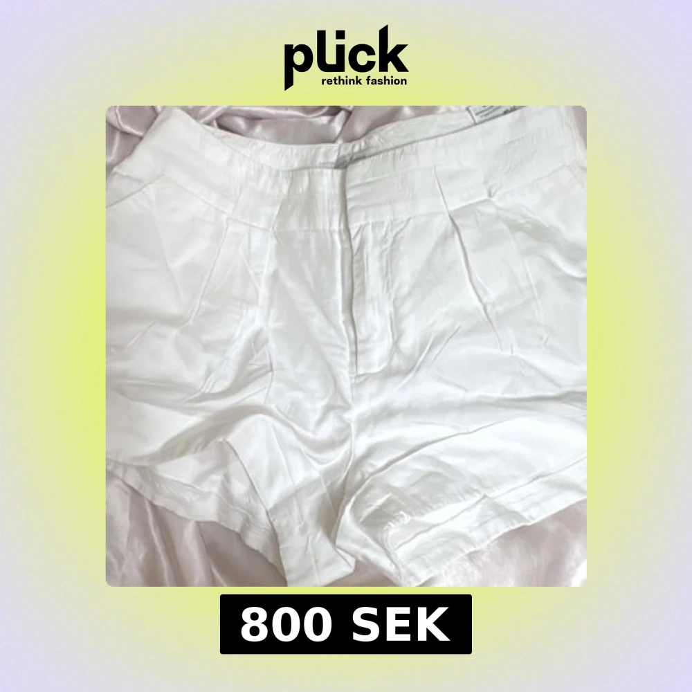 Snygga vita shorts från Guess by Marciano med elegant metallmärke fram. De har sidfickor och är tillverkade i ett lyxigt, glansigt material som känns mjukt mot huden. Perfekta för sommaren eftersom att de inte är see through, har aldrig använt