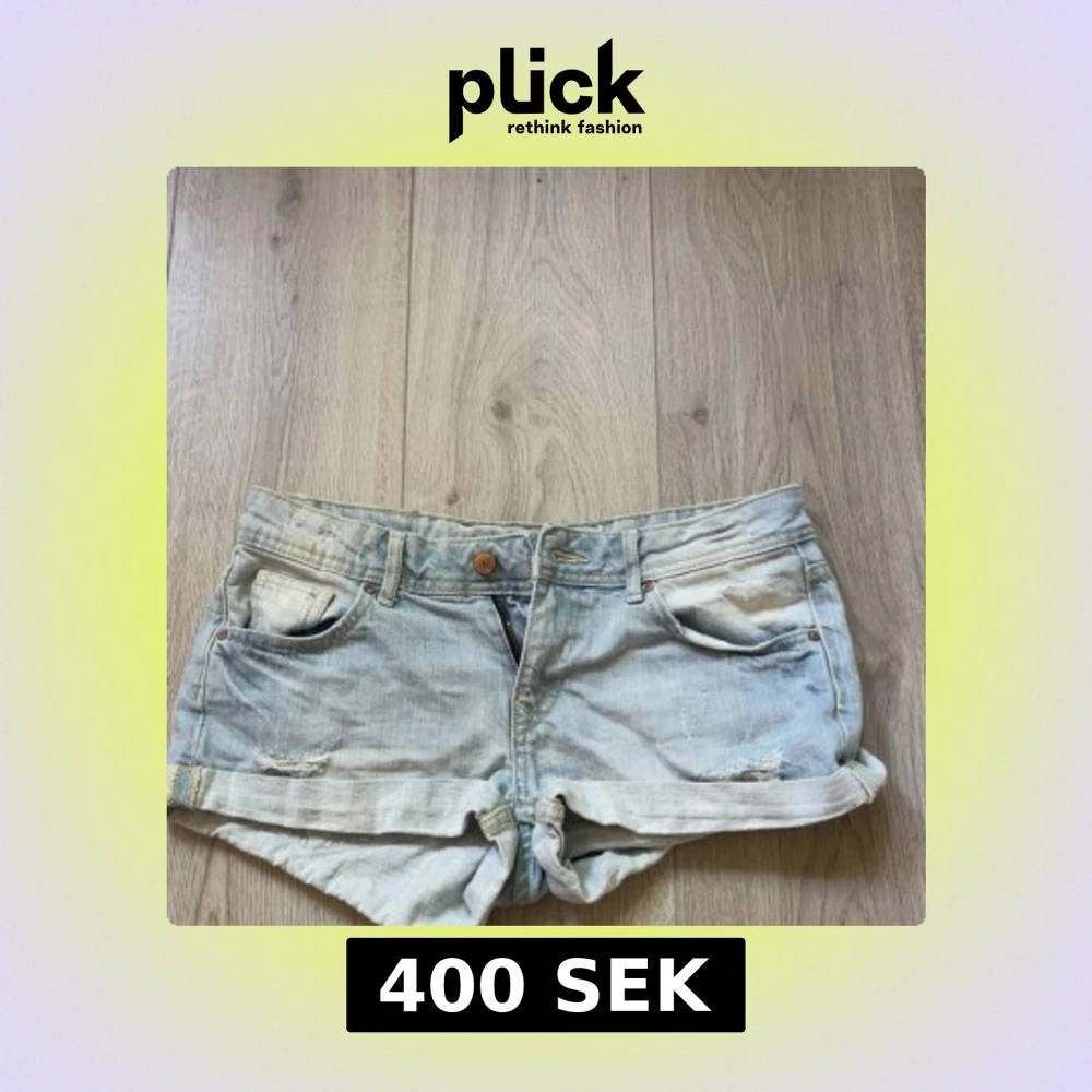 Snygga ljusblå jeansshorts från H&M Divided med upprullade benslut och slitna detaljer framtill. Klassisk femficksmodell med gylf och knapp, samt bälteshällor. Perfekta för varma dagar och en avslappnad look.